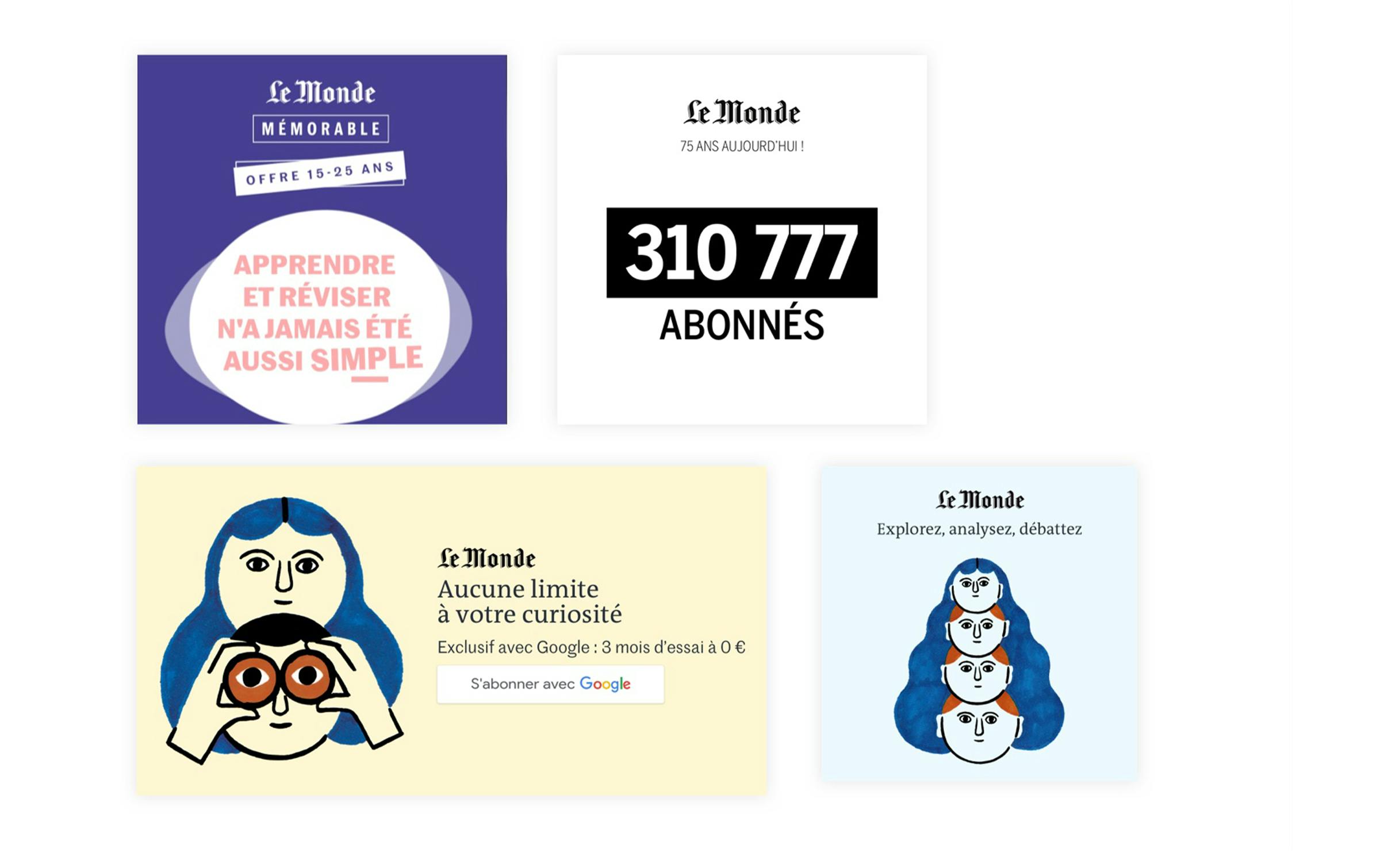 With more than 540K online subscribers and 180M visit per month, i've been working for more than 1 year now with the marketing team of Le Monde, creating campaigns displayed on social media in order to reach the 1M subscribers for 2025.